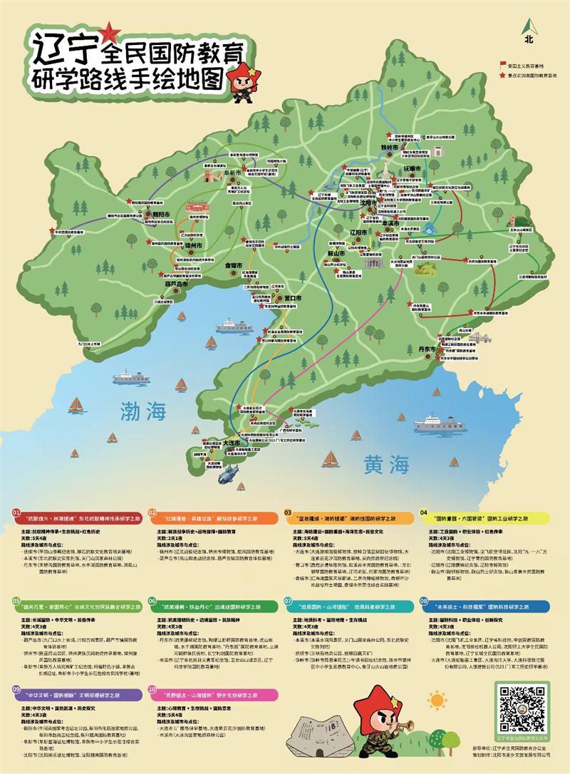 為深入貫徹落實(shí)《中華人民共和國(guó)國(guó)防教育法》,進(jìn)一步整合全省國(guó)防教育資源,規(guī)范引導(dǎo)國(guó)防研學(xué)活動(dòng),傳承紅色基因,賡續(xù)紅色血脈,省全民國(guó)防教育辦公室委托專業(yè)機(jī)構(gòu),規(guī)劃設(shè)計(jì)了“抗聯(lián)烽火·林海鑄魂”“抗美援朝·鐵血丹心”等10條國(guó)防教育研學(xué)路線,制作了手繪地圖,供全省國(guó)防教育研學(xué)參考選用。