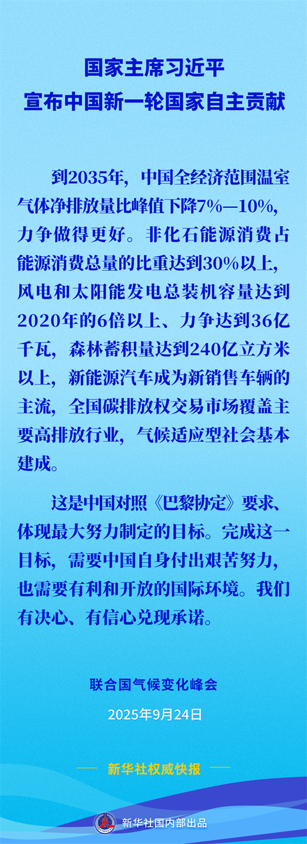 9月24日,習(xí)近平主席在聯(lián)合國(guó)氣候變化峰會(huì)發(fā)表視頻致辭時(shí),鄭重宣布中國(guó)新一輪國(guó)家自主貢獻(xiàn)。