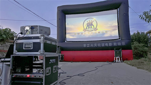 9月17日晚,夜空的星斗剛剛露出笑臉,早已架設(shè)好的電影屏幕上就播放著習(xí)近平總書(shū)記來(lái)錦州視察、錦州城市宣傳片、凌海市2023職工趣味運(yùn)動(dòng)會(huì)、紅色歌曲MV、大決戰(zhàn)之解放錦州精剪鏡頭。工會(huì)干部、企業(yè)一線(xiàn)工人、廣大職工群眾圍坐在一起,七點(diǎn)整,一場(chǎng)點(diǎn)單式數(shù)字電影《滿(mǎn)江紅》精彩上演!這是錦州市工人文化宮電影放映隊(duì)走進(jìn)凌海市總工會(huì)大院的場(chǎng)景。