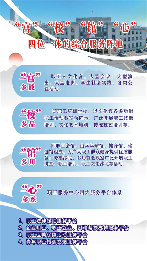 一“心”多系:即構(gòu)建職工服務(wù)中心四大服務(wù)平臺體系。